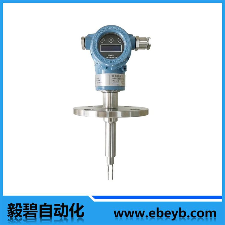EB5300 係列在線密度、濃度計(jì),是使(shǐ)用聲波頻率信號源對金(jīn)屬音叉進行激勵(lì),並使音叉處於中心頻率下自(zì)由振動,此頻率與接觸液體的密度有著相聯對應(yīng)關係,因而通過對頻率(lǜ)的分析可測量液體的密度,再進行溫補可(kě)消除係統的溫漂(piāo); 而濃度(dù)則根據對應液體密度和濃度的(de)關(guān)係式可計算出20℃溫度下的濃度值。